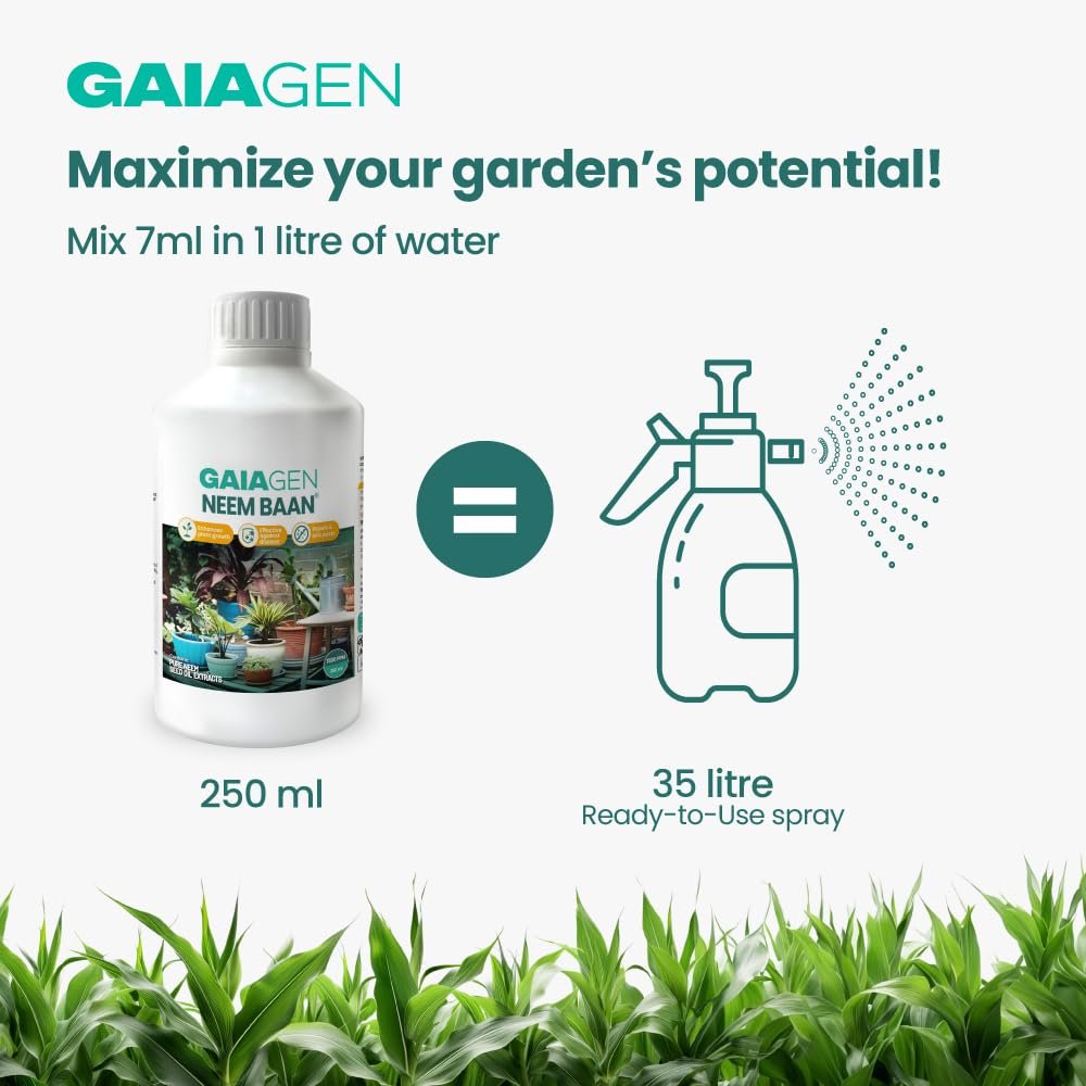 - Gaiagen Neem Oil acts as an antifeedant, repellent, and insect growth regulator. It targets pests at every stage—egg, larva, and adult—making it a holistic solution for garden and farm protection. It not only eliminates existing infestations but also prevents future outbreaks.