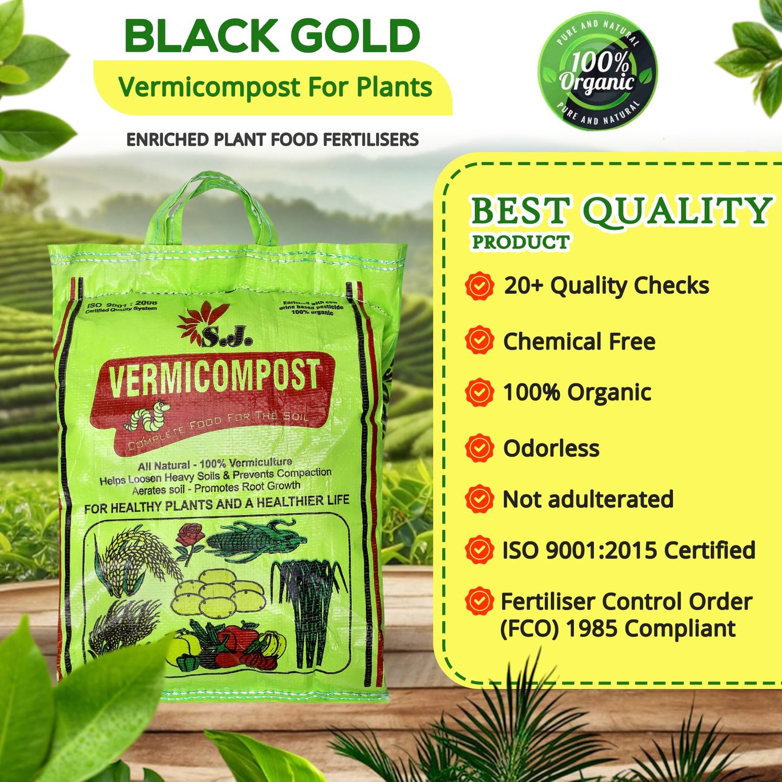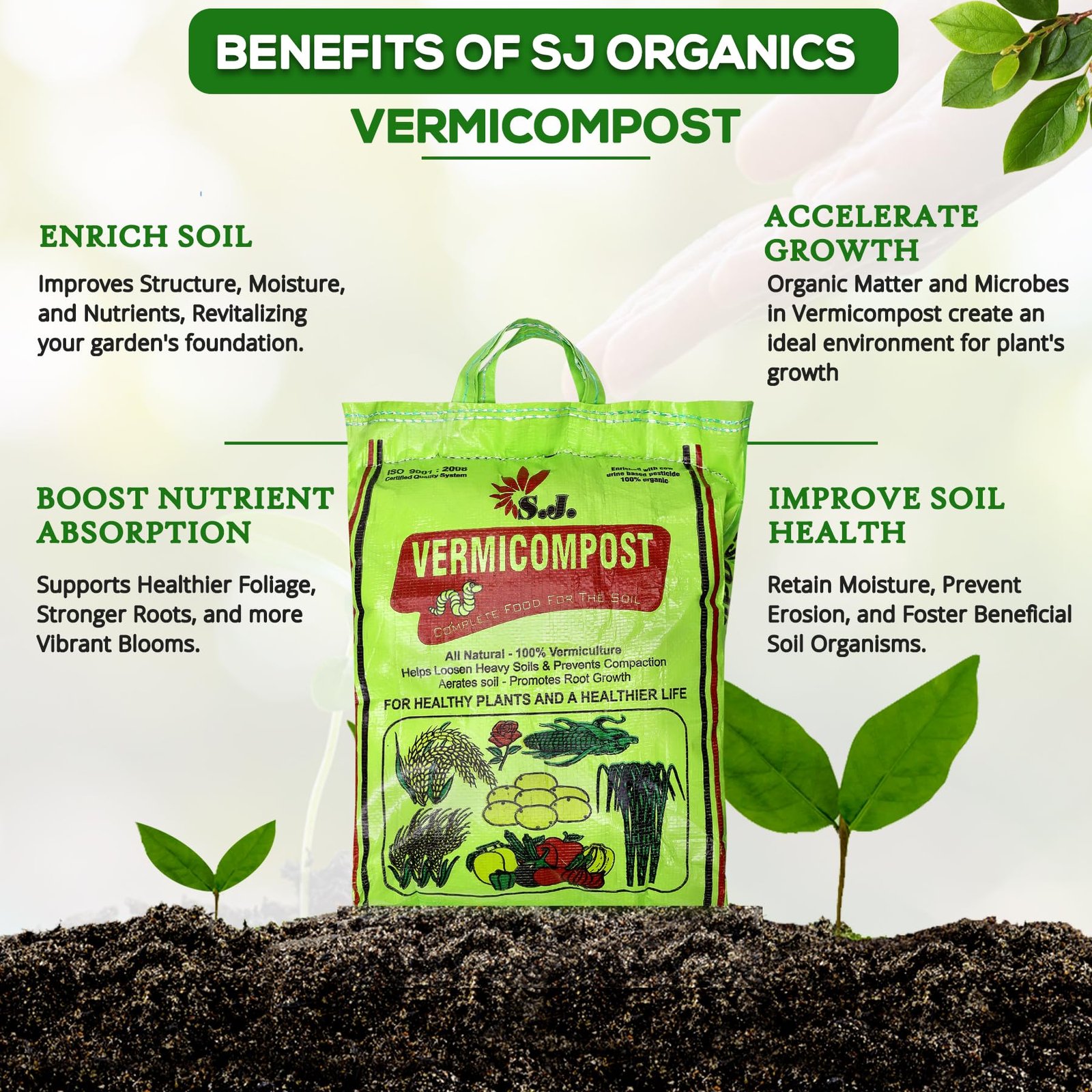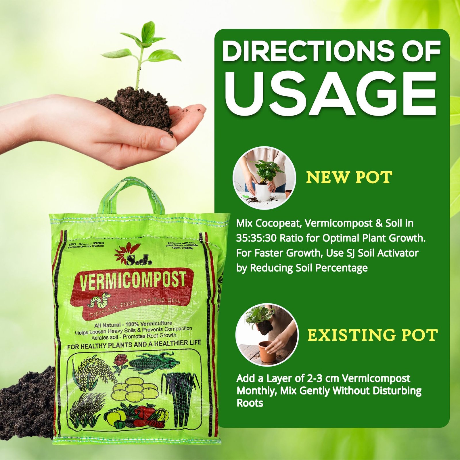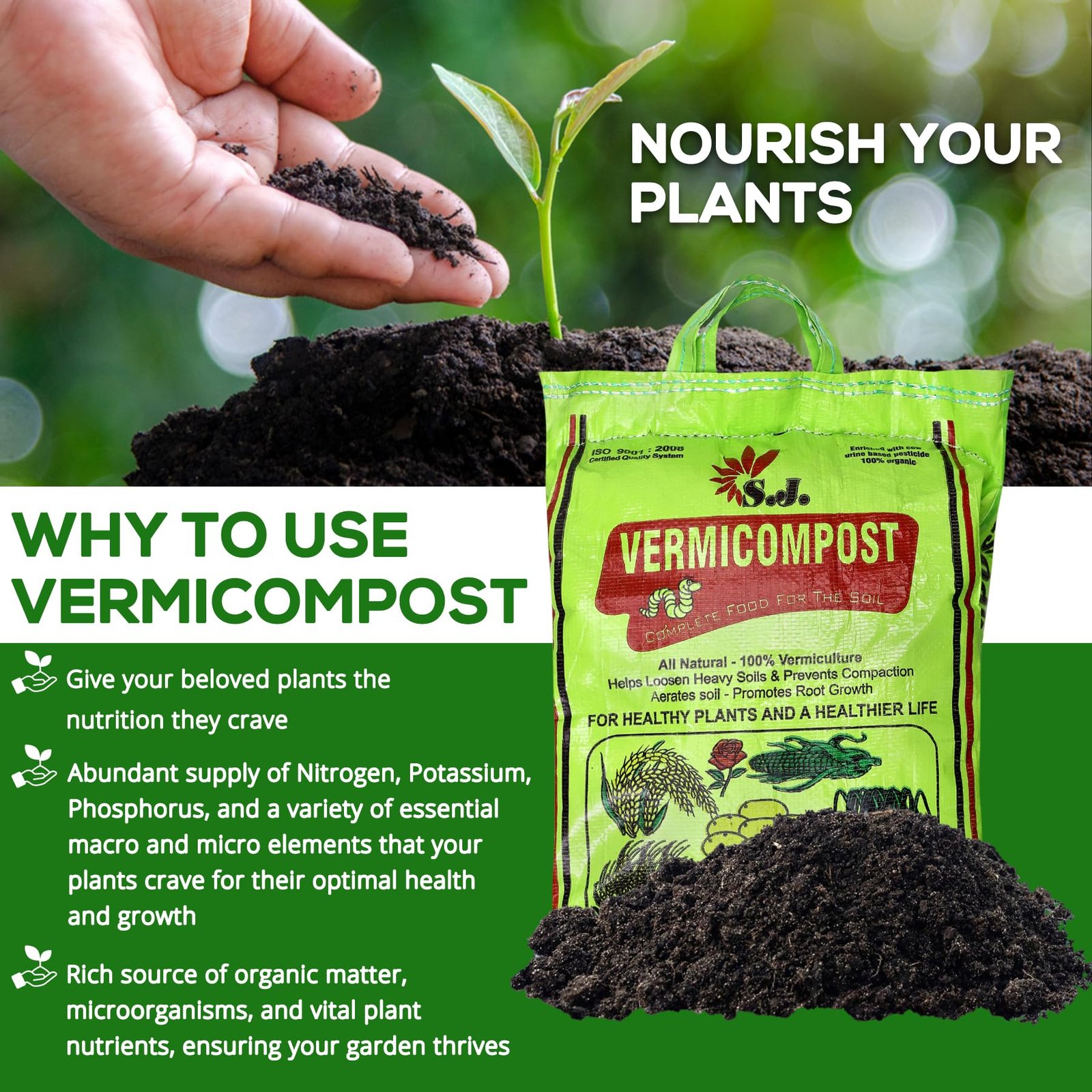 SJ Organics Vermicompost For Plants – 5 Kg | Odorless Fertilizer Powder | Ready to Use Organic Manure | Fertilizers for Plant Home Garden | Enriched Plant Food Fertilisers | Compost for Indoor plants