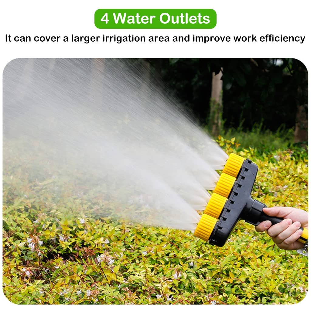 - 4 WATER OUTLETS: For efficient and quick irrigation, we use 4 water nozzle which can cover a larger irrigation area, improving work efficiency. Each nozzle cap is with 5 water outlet holes, enlarging the irrigation range and provide more even spraying at same time. (When used in conjunction with a water pump, the effect will be more pronounced.)