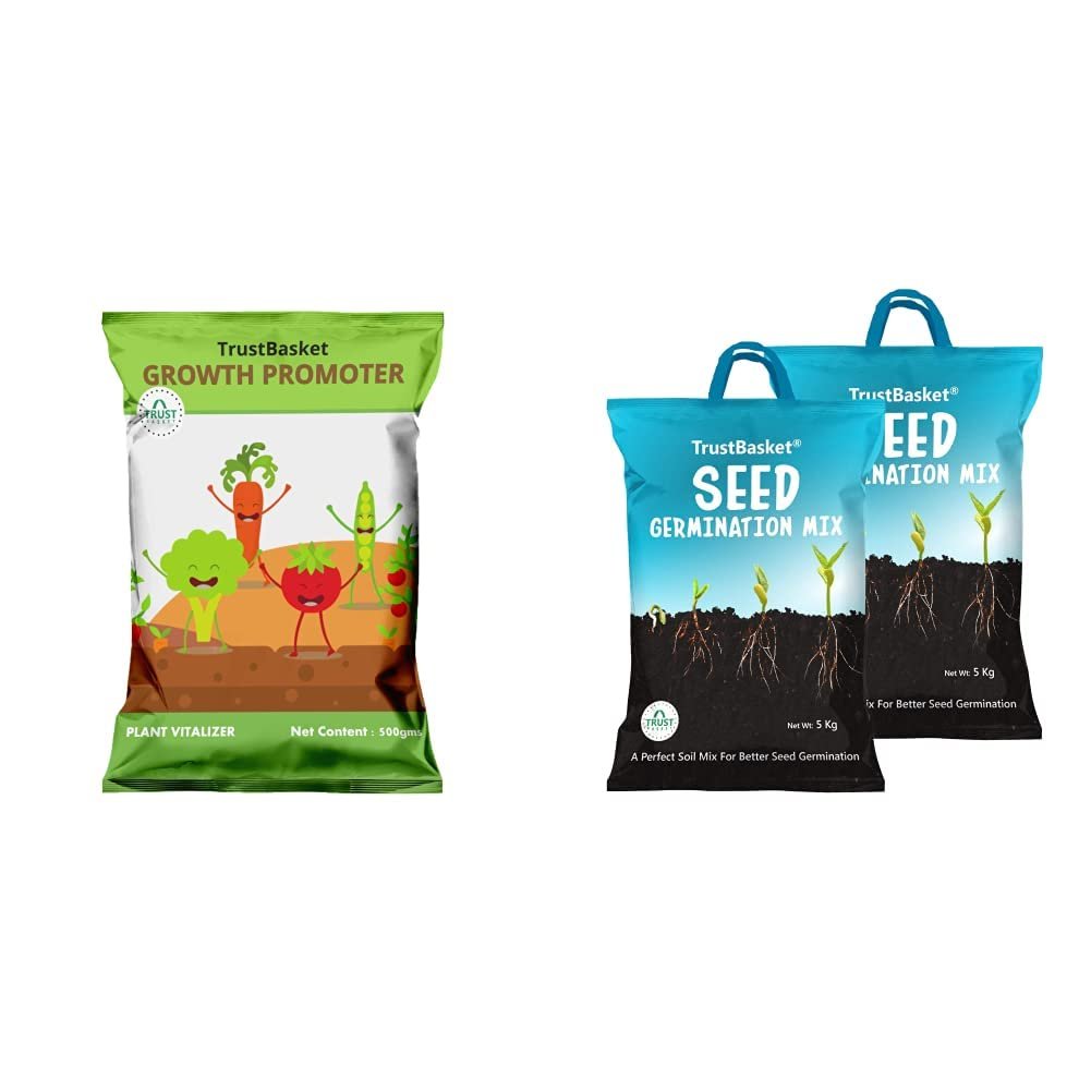 Trust Basket Plant Growth Promoter/Booster Organic Fertilizer, 500 G & Seed Germination/Starter Mix- 10 KG Combo quantity