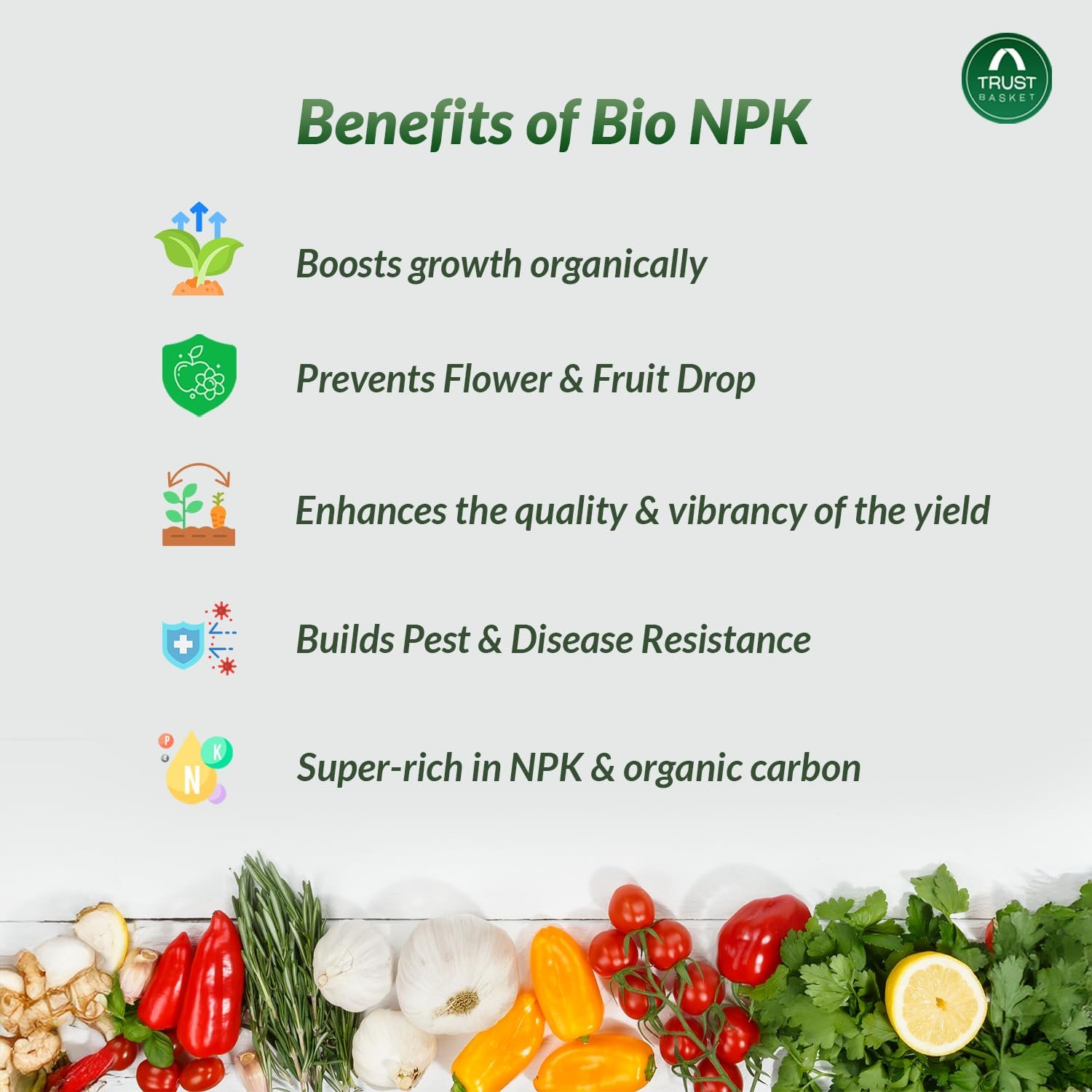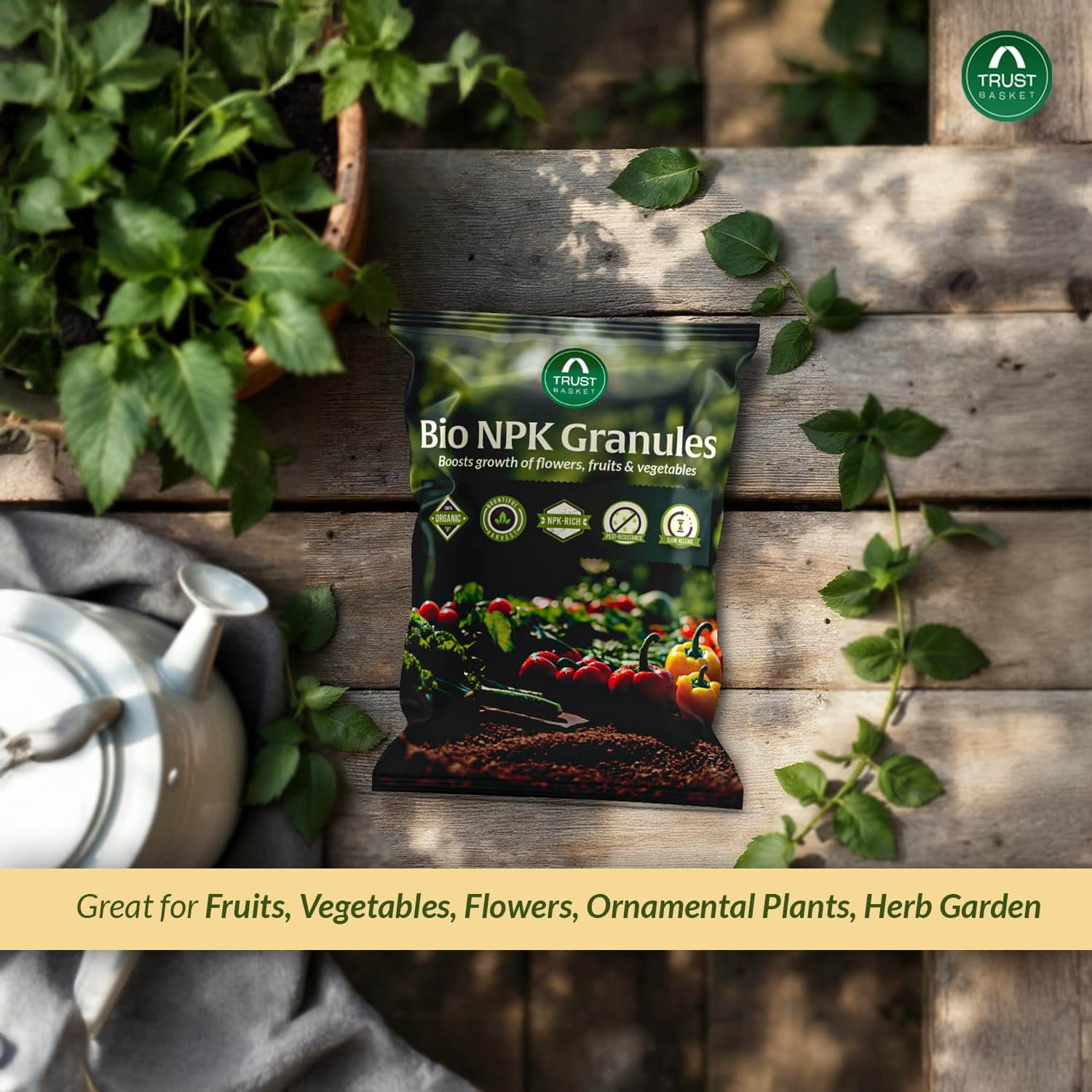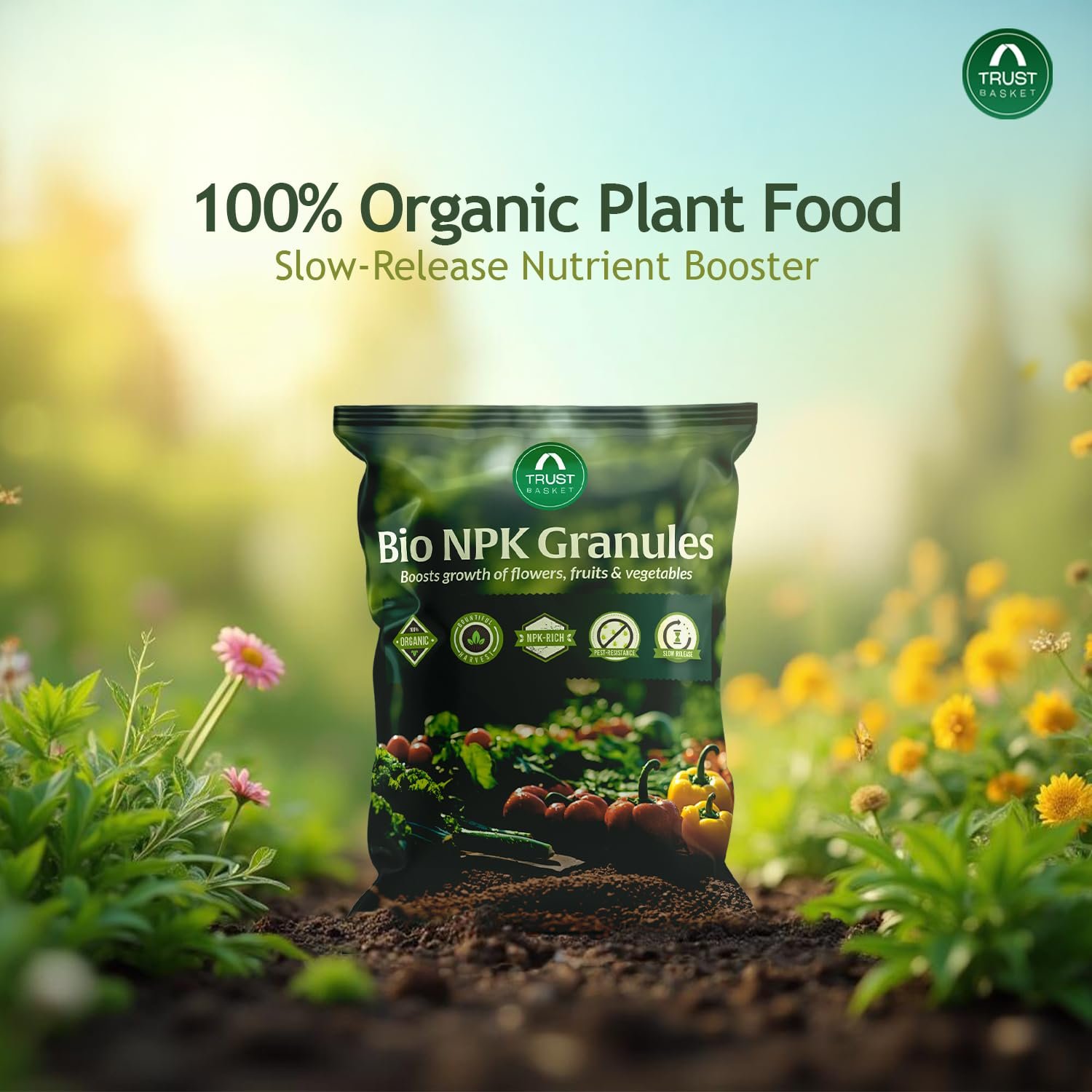 TrustBasket Organic NPK Fertilizer for Plants 1kg – Bio NPK 19 19 19 Fertilizer for Home Garden & Farming | Biozyme Granules, Boosts Growth & Disease Resistance, Prevents Flower & Fruit Drop